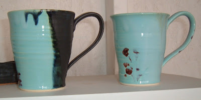 purpley vases. they look kinda blue in this picture but unfortunately this glaze doesn't photograph well in natural light.
